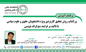 د تطبیقي څېړنې میتودولوژۍ په اړه ورکشاپ، چې د حقوقو او سیاسي علومو زده کوونکو لپاره د مونوگراف لیکلو پروسې باندې ټینګار شوی و، د چهار شنبې په ورځ د ۱۴۰۲ کال د قوس په ۱ نېټه د محترم استاد ډاکټر میرزاحسین فاضلي لخوا د «۲۹» تنو د حقوقو او سیاسي علومو پوهنځی زده کوونکو […]